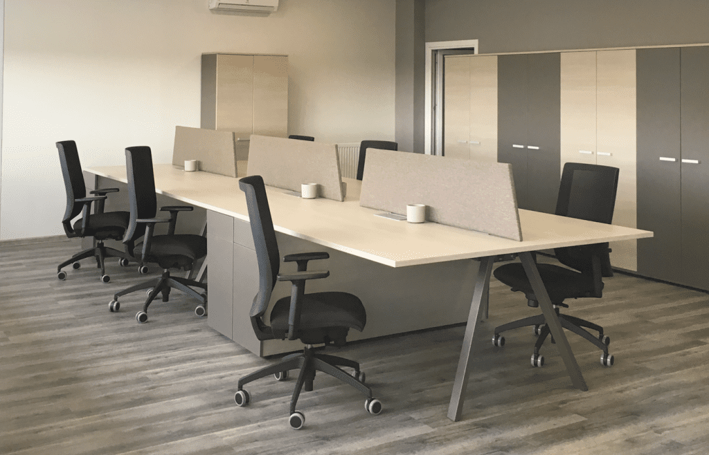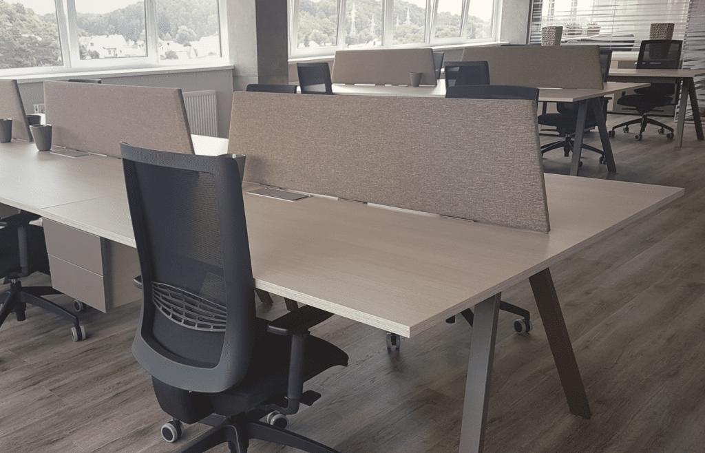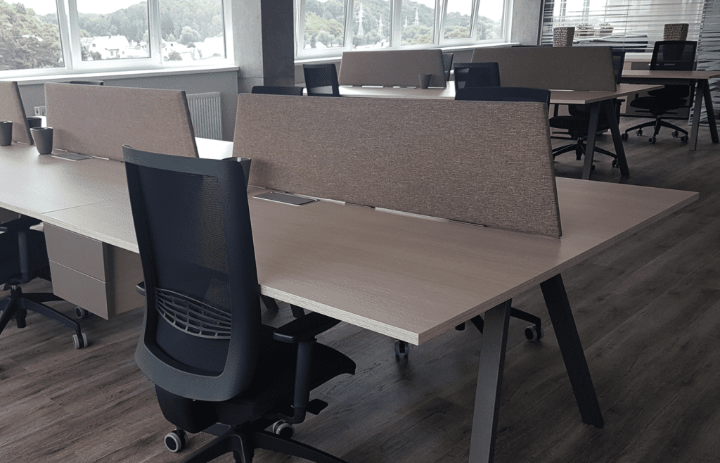 O aktyvus pertvarų raštas suteikia biurui smagios energijos.