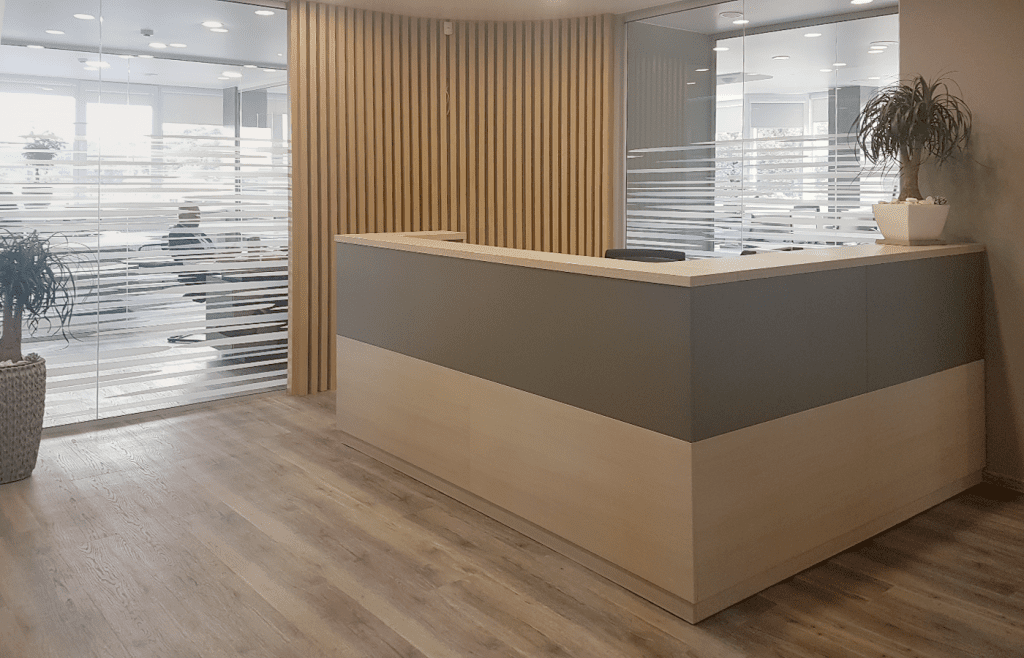 Solidus elegantiškas priimamasis tvirtai ir užtikrintai pradeda dialogą – mūsų kompanija stabili ir patikima.