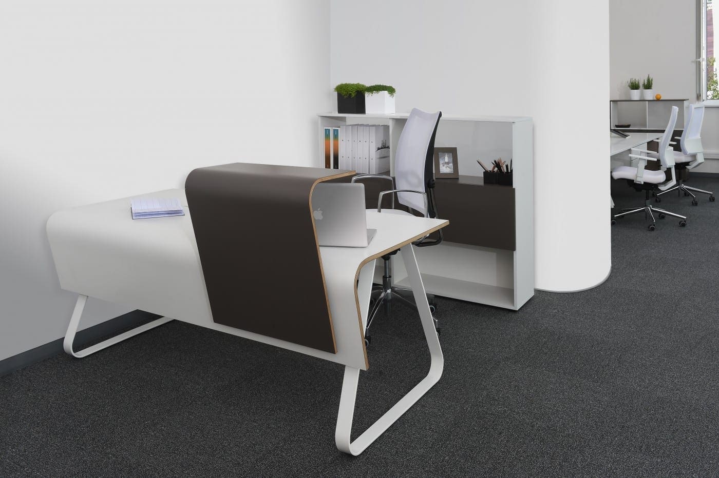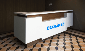 Farmacijos įmonei pasiūlėme šviesų elegantišką priimamąjį.