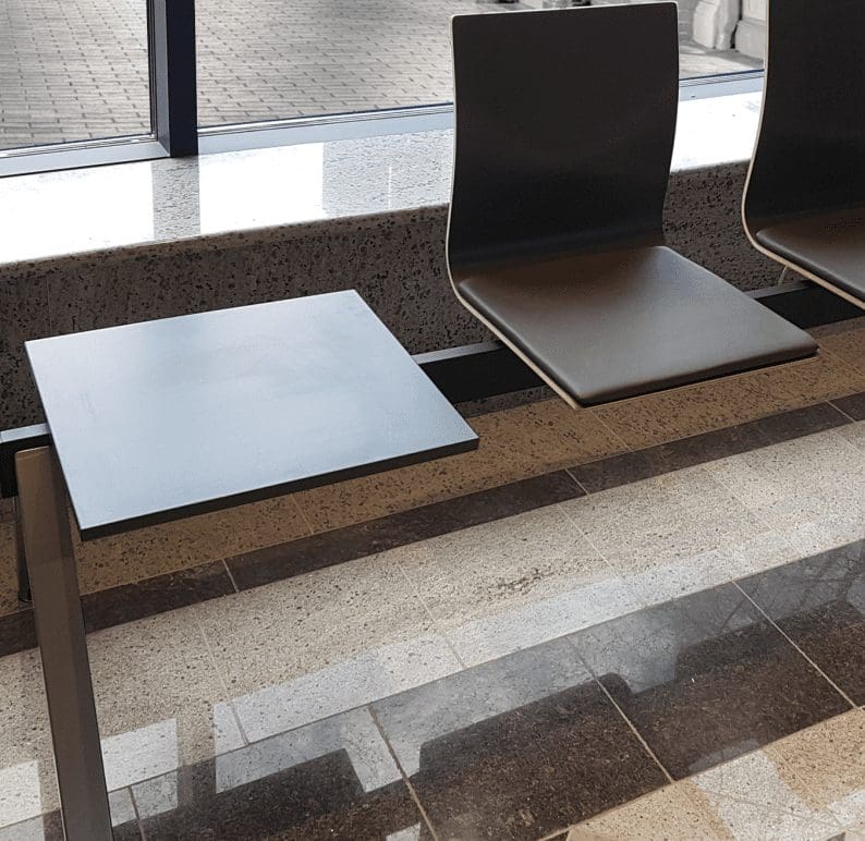 Užduotis –  sukurti šiuolaikišką ir patogią darbo zoną, kuri derėtų prie įspūdingo interjero. Darbo pobūdis – konsultacijos, bilietų pardavimai. Todėl recepcija turėjo būti pritaikyta prie šio darbo specifikos.