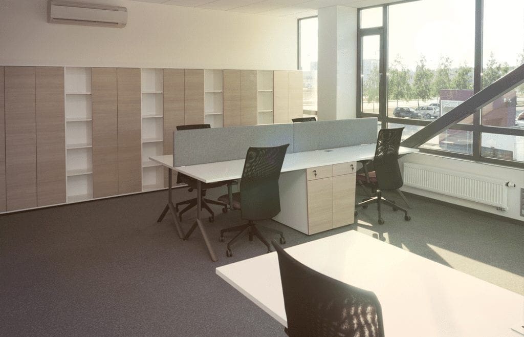Kiekviena jų turi atskirus biurus ir vieną bendrą poilsio zoną.