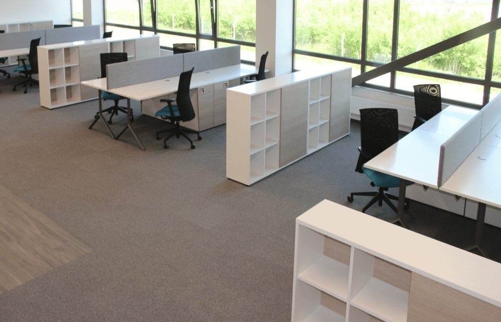 Atviro stiliaus biure, kai visos darbo vietos yra vienoje erdvėje, labai svarbus darbo vietų zonavimas,
