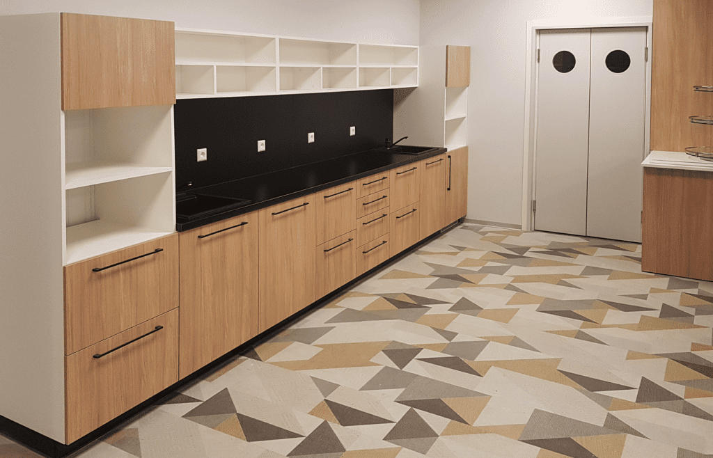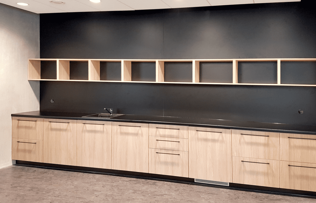 Minimalistiniai ALFA O serijos baldai labai tiko prie architektūrinių pastato sprendimų.